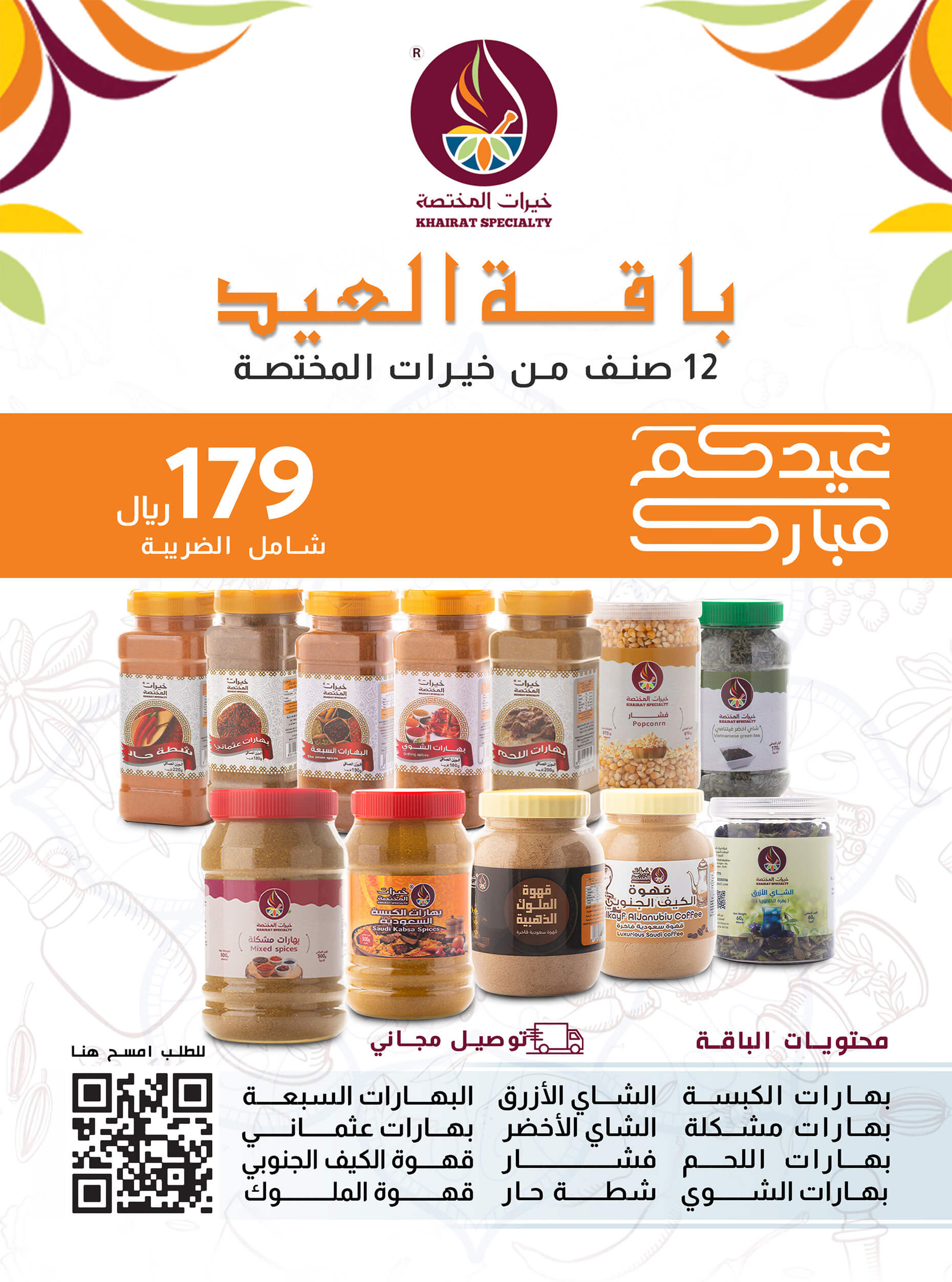 باقــــــة العيـــــــــــــــــــدعرض حصري خاص من شركة خيرات المختصةباقـــــــة العيد : كــــــــل مـــا تحتاجـــه لعيد الفطر المبــــــارك!إطلبها ال...